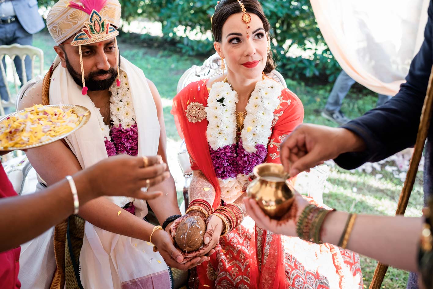 In a first part of the ceremony Greta had to carry out preparatory rituals, and then finally she met her beloved at the gazebo. He had arrived to the ceremony dancing with his relations and friends on Indian music. It was a really amazing moment. I was deeply fascinated and conquered.